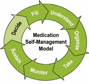 People often don’t ask pharmacists questions about their medications. This is especially true in pharmacies located in retail outlets – i.e. discount stores and supermarkets. Store customers paying for groceries and other non-pharmacy items create longer lines of impatient customers. It is awkward to have a conversation with a busy pharmacist when so many people are waiting to pay. Typically, pharmacy customers receive their prescriptions in paper bags stapled shut. Later, when there is no one to answer questions, they may struggle to make sense of prescription instructions. Resource: The medication self-management model presented in this article borrowed from Dr. Michael Wolf’s Health Literacy & Numeracy Workshop. (Presentation on youtube.com)Improving Medication Adherence for Low Health Literacy Patients